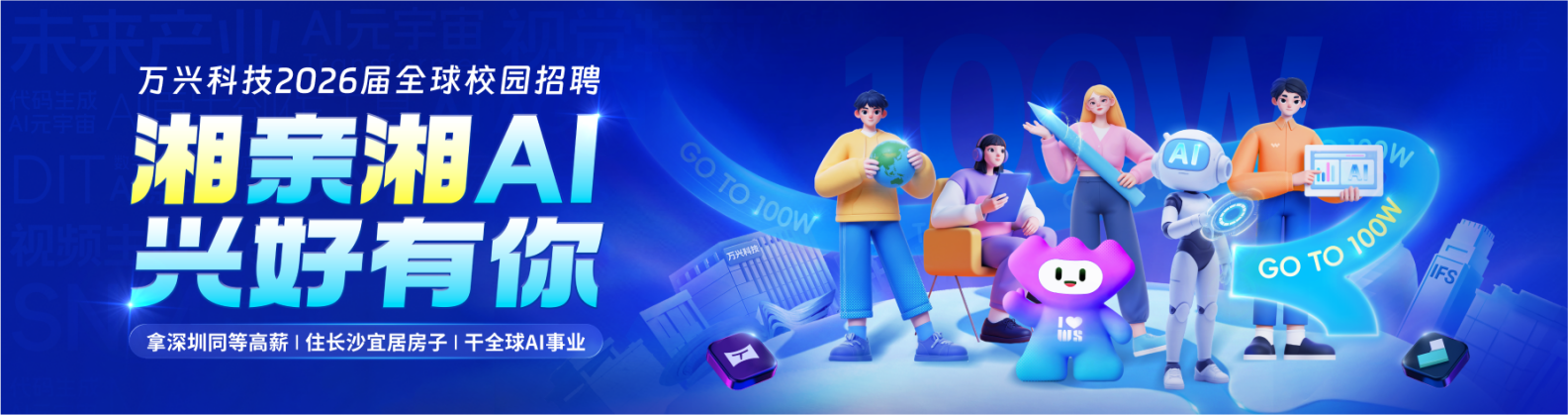 同学你好!AI浪潮奔涌,创意引擎轰鸣,万兴科技正以行业领先薪酬,诚邀全球菁英!产品、研发、营销、设计、职能五大类岗位全面上新,长沙、深圳、杭州三地均可投!500个高含金量Offer等你来拿!加入我们,一起乘风AI!