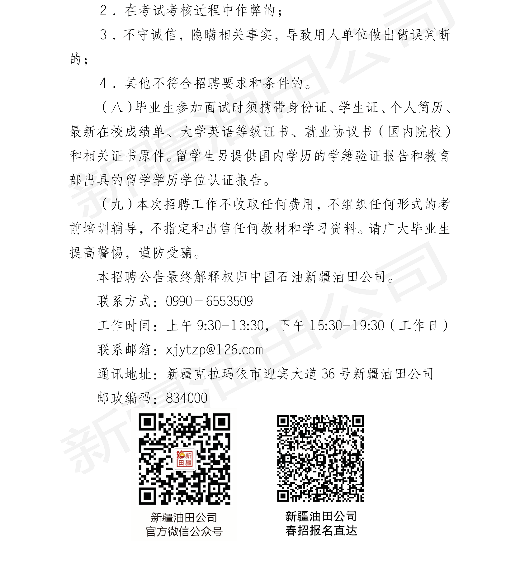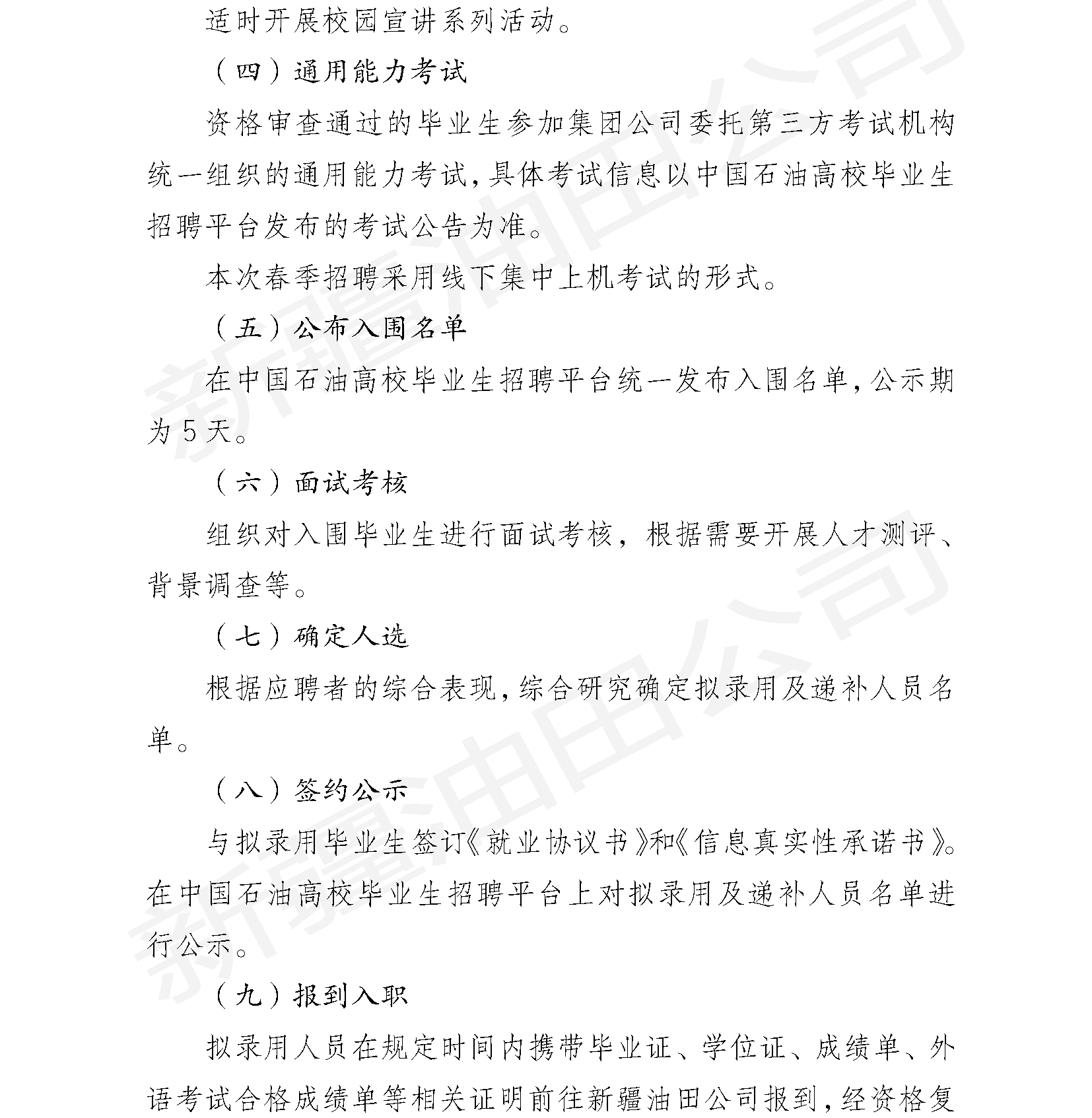 中国石油新疆油田分公司2024年春季高校毕业生招聘简章