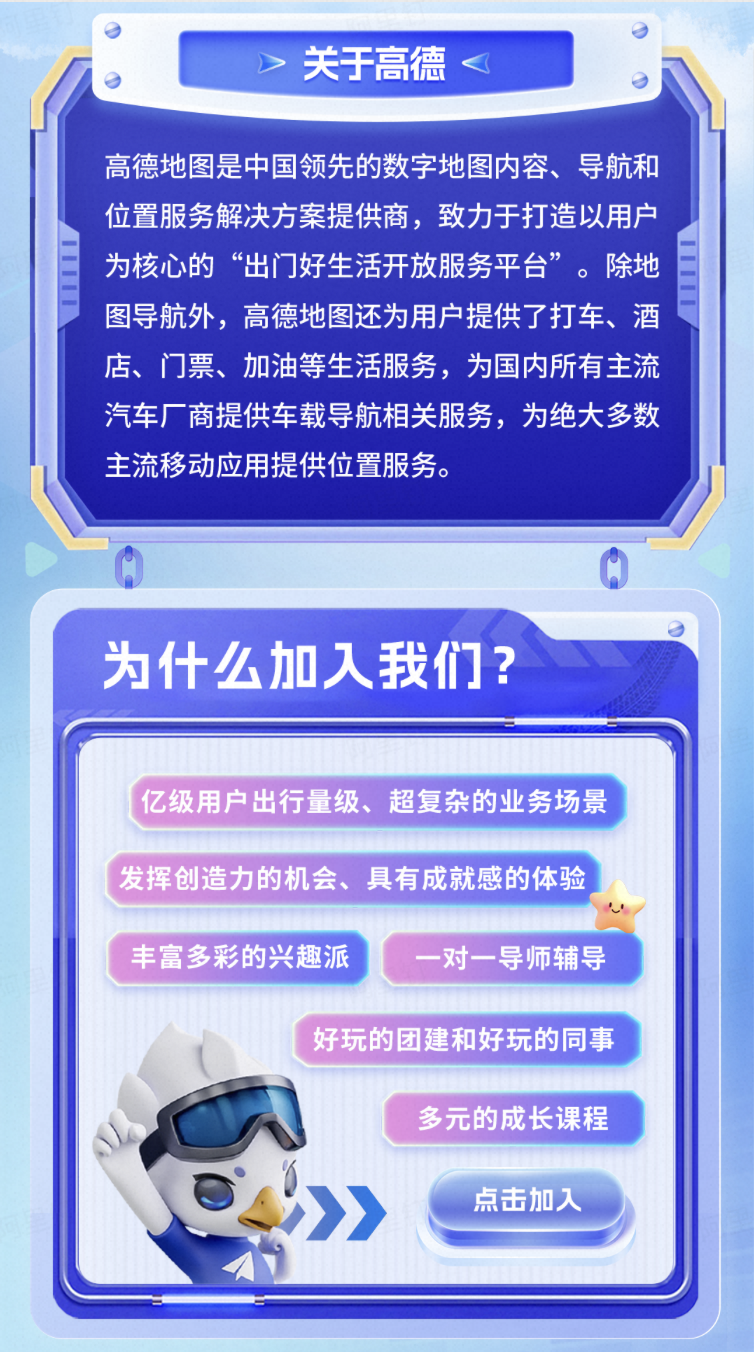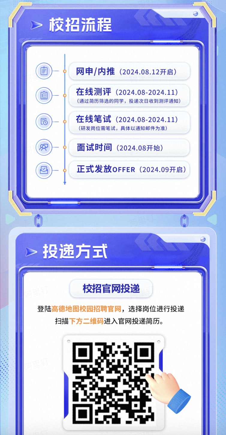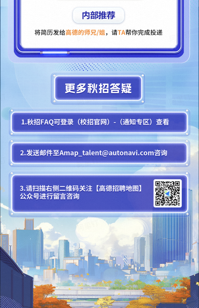 登录高德地图招聘官网进行投递,或扫描下方二维码进入官网投递 。
