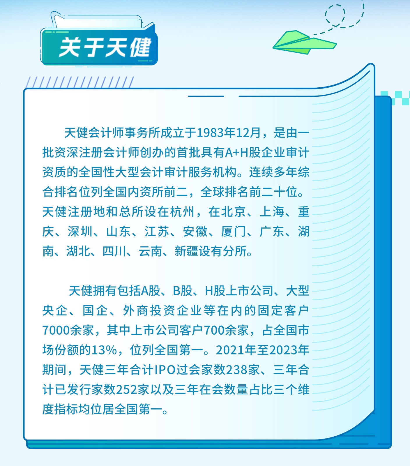 【万企进校园】天健会计师事务所2024年暑期实习培训生招聘计划