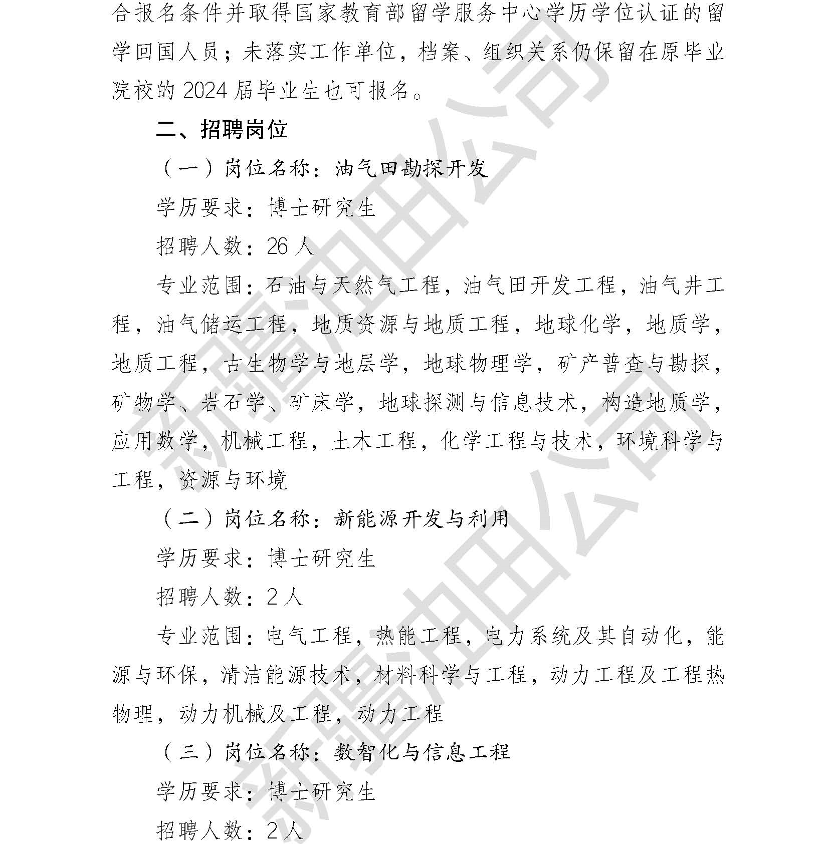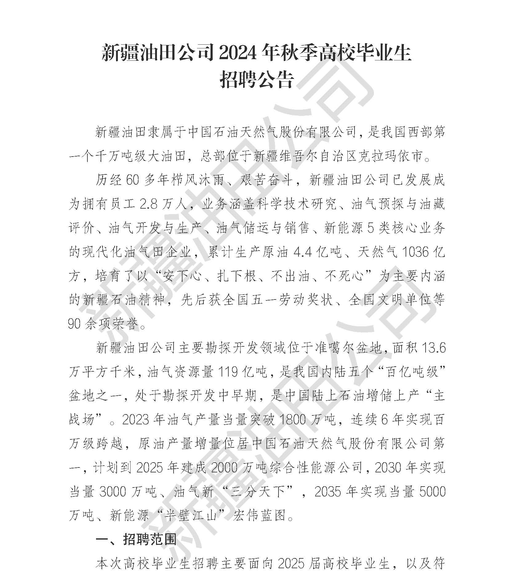新疆油田公司2024年秋季高校毕业生招聘公告