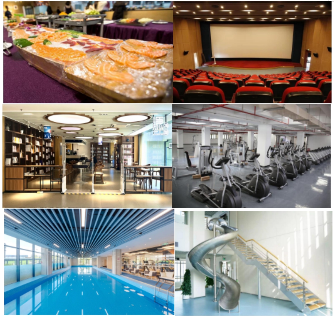 2.公司内设恒温泳池 、健身房 、瑜伽室, 定期开放健身课程。
