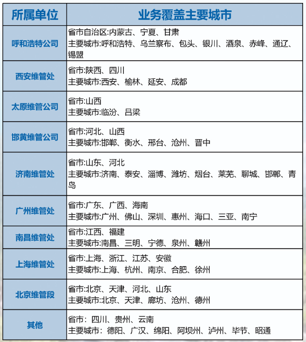 中铁电气化铁路运营管理有限公司成立于2005年,隶属国资委,是国内首家市场化轨道交通运营管理的专业化公司,总部设在北京,下设32家维管处段单位(分公司),目前在九个铁路局集团公司开展铁路设备运营管理业务,覆盖长三角、粤港澳大湾区、京津冀、成渝都市圈、西咸都市圈等,运营管理的铁路设备涵盖了牵引供电、工务、通信、信号、车辆、车务、机务及房建等全部专业,里程超过20000专业运营公里,约占全路委托管理设备的90%以上;在北京、天津、广州、成都、青岛、西安、南宁、南昌等十多个城市开展城市轨道交通设备维保业务,维保里程突破1000运营公里。