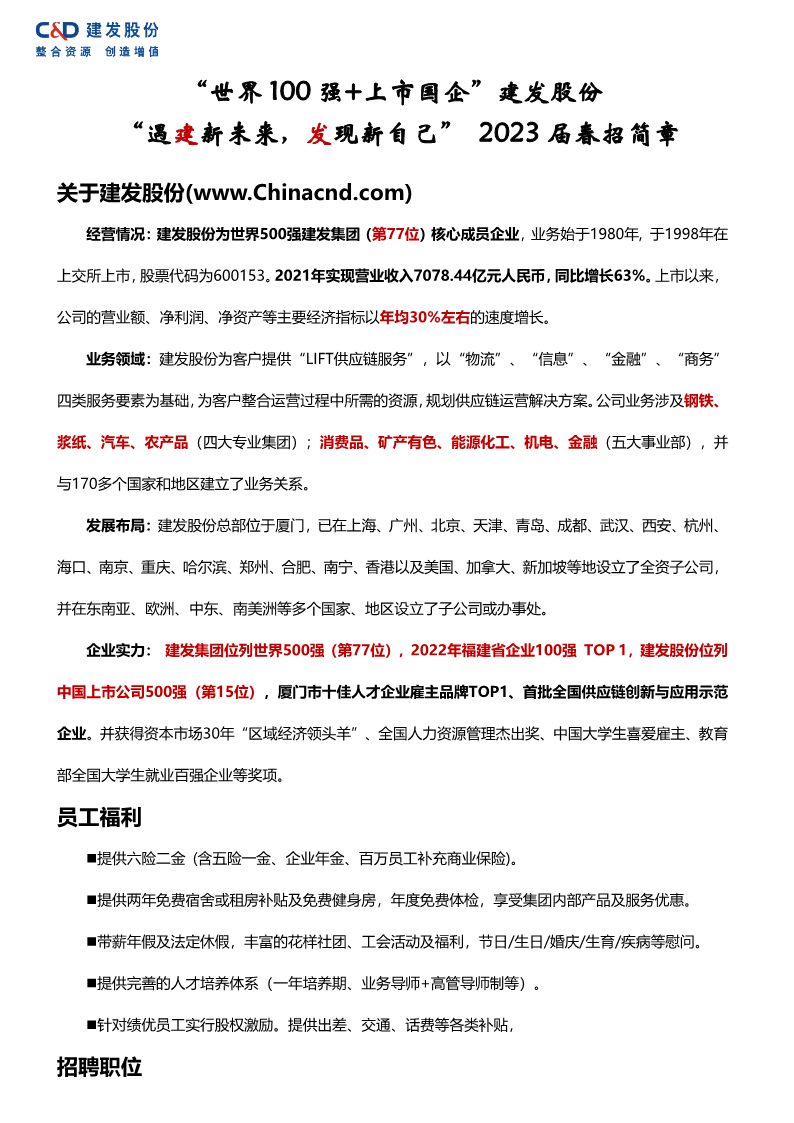 “世界100强+上市国企”建发股份 “遇建新未来,发现新自己” 2023届春招简章