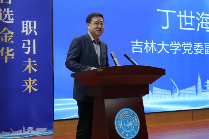 金华市“一廊六城十链”巡回引才吉林大学专场活动顺利召开12月11日,浙江省金华市人民政府副市长庄凌飞一行来我校开展人才引进宣讲会。党委副书记丁世海出席活动并致辞。 丁世海代表学校对庄凌飞一行的到来表示热烈欢迎。他表示,吉林大学学科综合实力雄厚,尤其在汽车零部件、生物医药等领域拥有显著优势,多年来为相关产业输送了大量高素质人才。他表示,吉林大学与金华市已具备良好的合作基础,期待未来进一步深